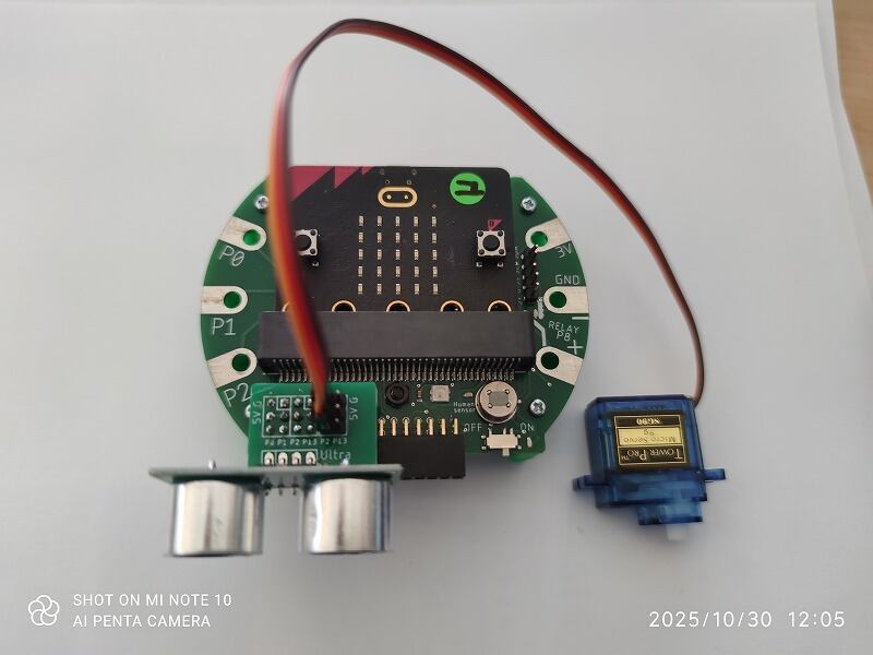 超音波センサーのボード上にはP2,P13ピンがありますので、サーボモーターなどをさらに追加接続できます。