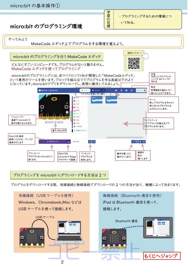 ※実習ノートには図解や実際のコード例が豊富に掲載されており、独学でもスムーズに学べます。画面上でもシミュレーションができますが、実機を動かすためにはmicro:bit等が必要です。